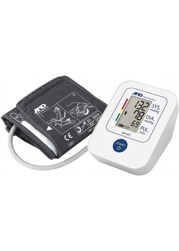 A&D Medical UA611 Upper Arm Blood Pressure Monitor 30 Memory Recall Shows systolic diastolic and pulse rates Pressure Rating Indicator Irregular Hearbeat Detection Battery life indicator Single button operation SlimFit Cuff The 611 Basic Blood Pressure Monitor is easy to use and comes standard with just the right number of features. 15 memory recall provides ample storage for home use or while traveling. Systolic, diastolic and pulse rate are all shown simultaneously for easy review. The 611 has A&D Medicals proprietary Pressure Rating Indicator, providing a snapshot of the users blood pressure classification according to the US JNC7 guidelines. Irregular Heartbeat Detection also comes standard. This key feature alerts the user to the presence of an irregular heartbeat while still providing an accurate reading.All the benefits of speed and accuracy are at the touch of a single button. The 611 Basic Blood Pressure Monitor is also one of our most efficient devices. When using alkaline batteries a user can expect approximately 700 readings before having to change batteries. A battery life indicator appears on the screen preventing any surprises.